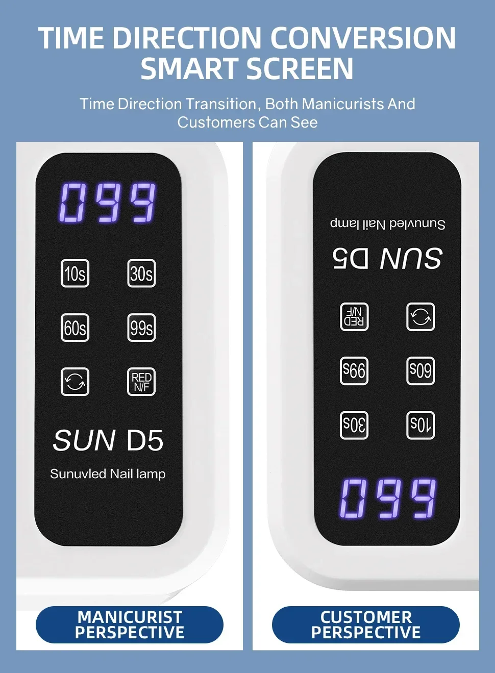 ❤【4 Timers & Touch Display】- the UV light for nails design with 4 time settings, including 10s ,30s, 60s and 99s. Round touch display shows the countdown time, and the touch screen button makes it easy to select the usage time, no physical button will prolong the product life.The display numbers can be flipped so that both the nail technician and the guest can clearly see the time.